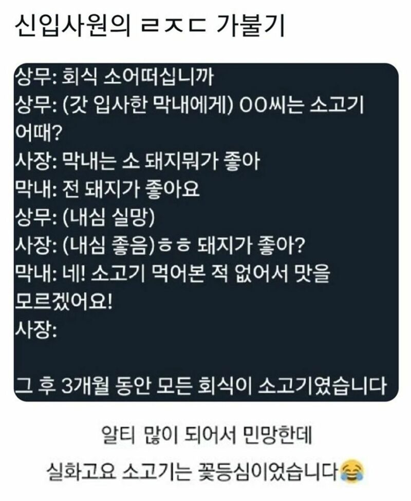 예를 들어, “너 그 돈으로 피자 먹을 거면 차라리 국밥 두 그릇 사 섭취하지”라는 논리에 “그 돈으로 국밥 섭취하면 배고프고, 더 보태자니 비싸고…”라며 반박할 말이 없으면 그게 바로 가불기 분위기이죠.