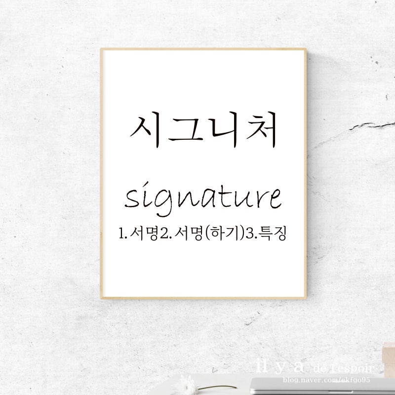 - 시그니처의 기본 뜻: 원래는 '서명'을 의미하지만, 이제는 '고유한 특징'이나 '대표성'을 나타내는 말로 많이 쓰여요.