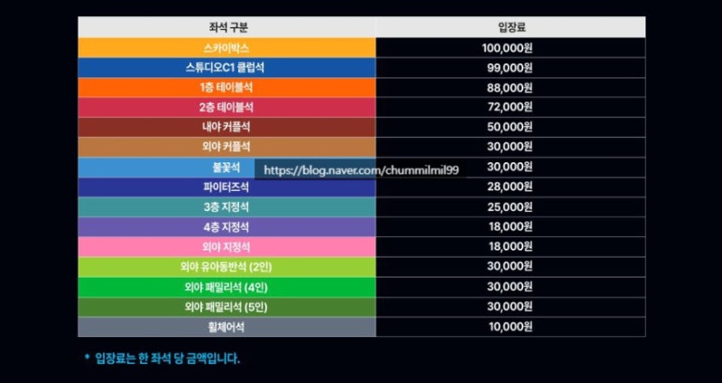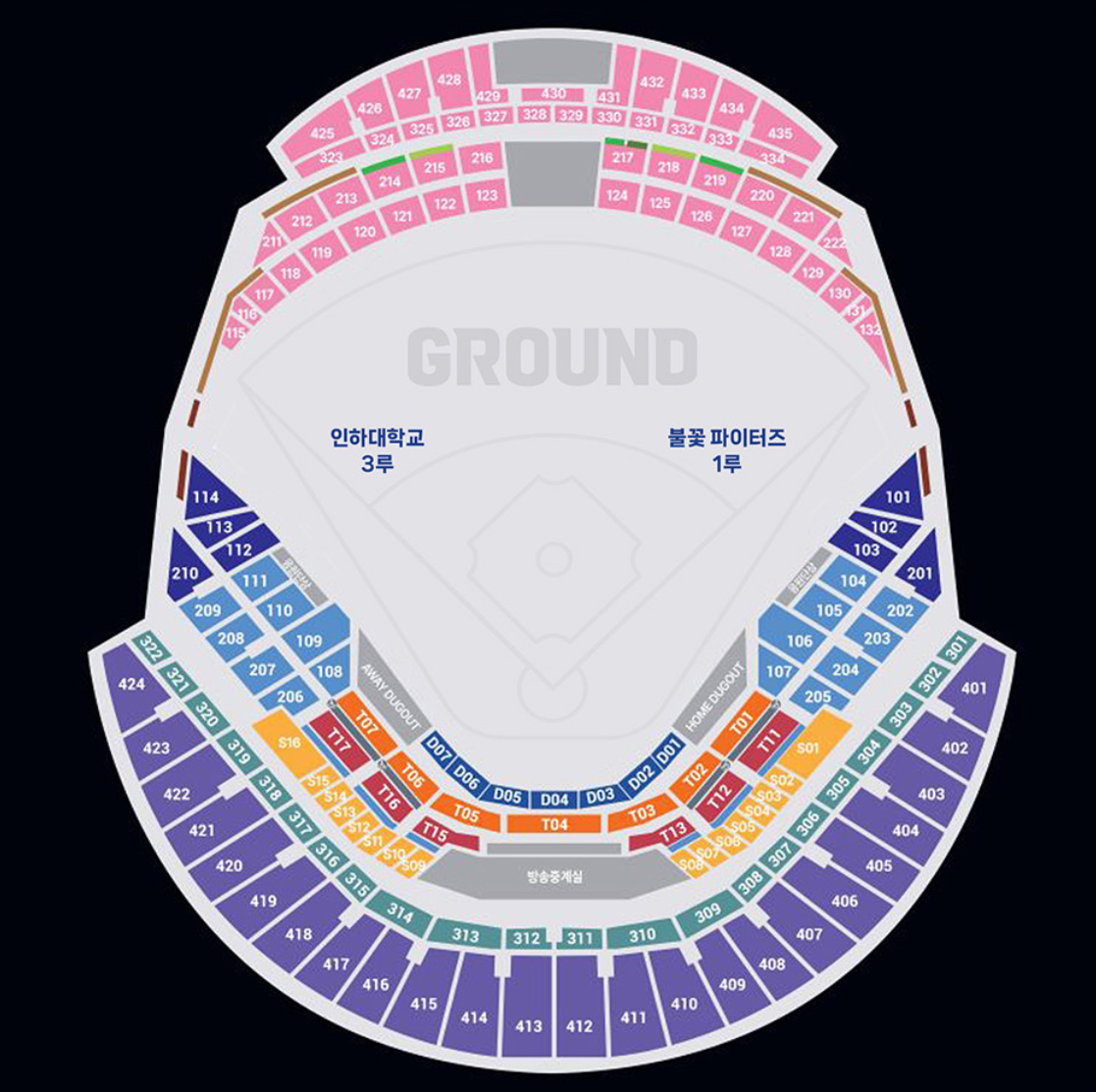 좌석은 스카이박스, 내야, 외야 중 본인의 스타일에 맞춰 선택하세요. 불꽃야구 직관은 간단한 스포츠 관람이 아니라 팬들과 전설의 선수들이 같이하는 \u2018축제\u2019이라고 합니다.